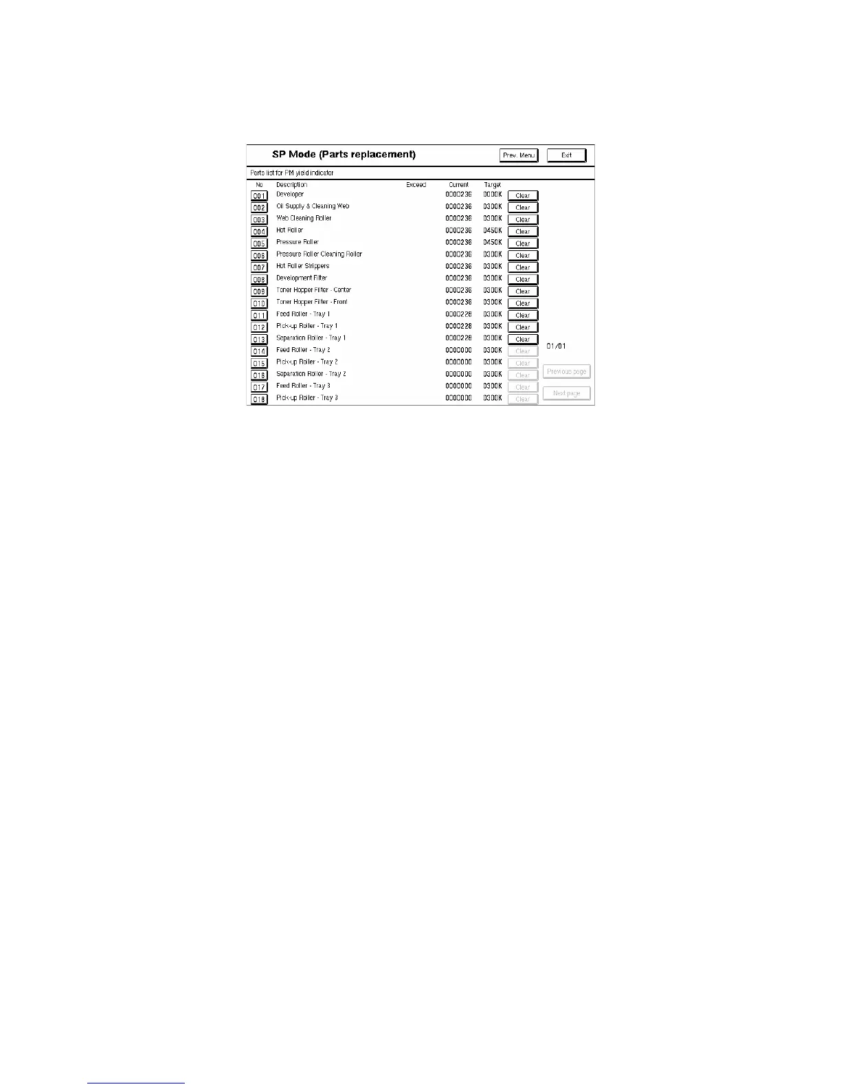 displayed. Normally, the PM parts counters should be checked on this screen.