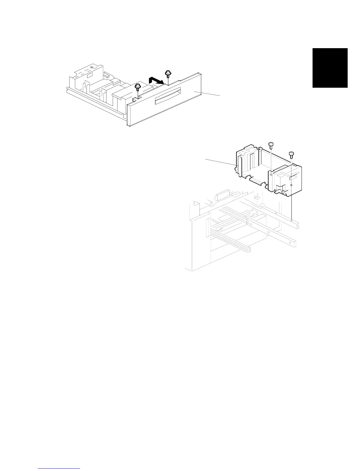 10. Pull out the right tandem tray [B] then remove it. ( x 2).