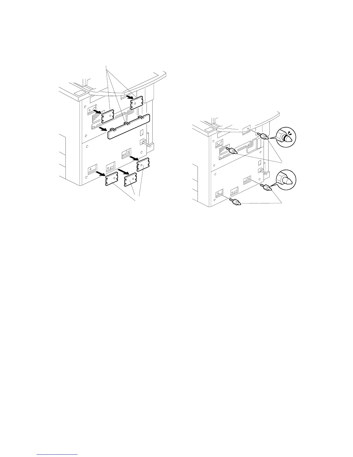 5. Install the pins with the grooved rings [C] on the right upper cover.