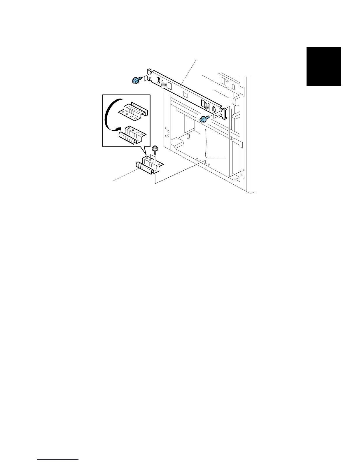 8. Remove the two screws that secure the ground plate [B].