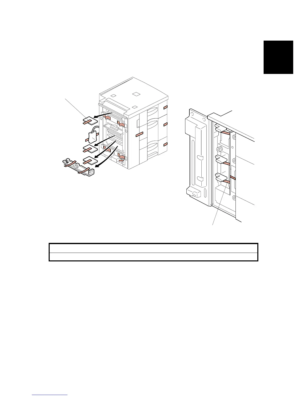 2. Open the LCT door and remove the shipping retainers and strips of tape [B]