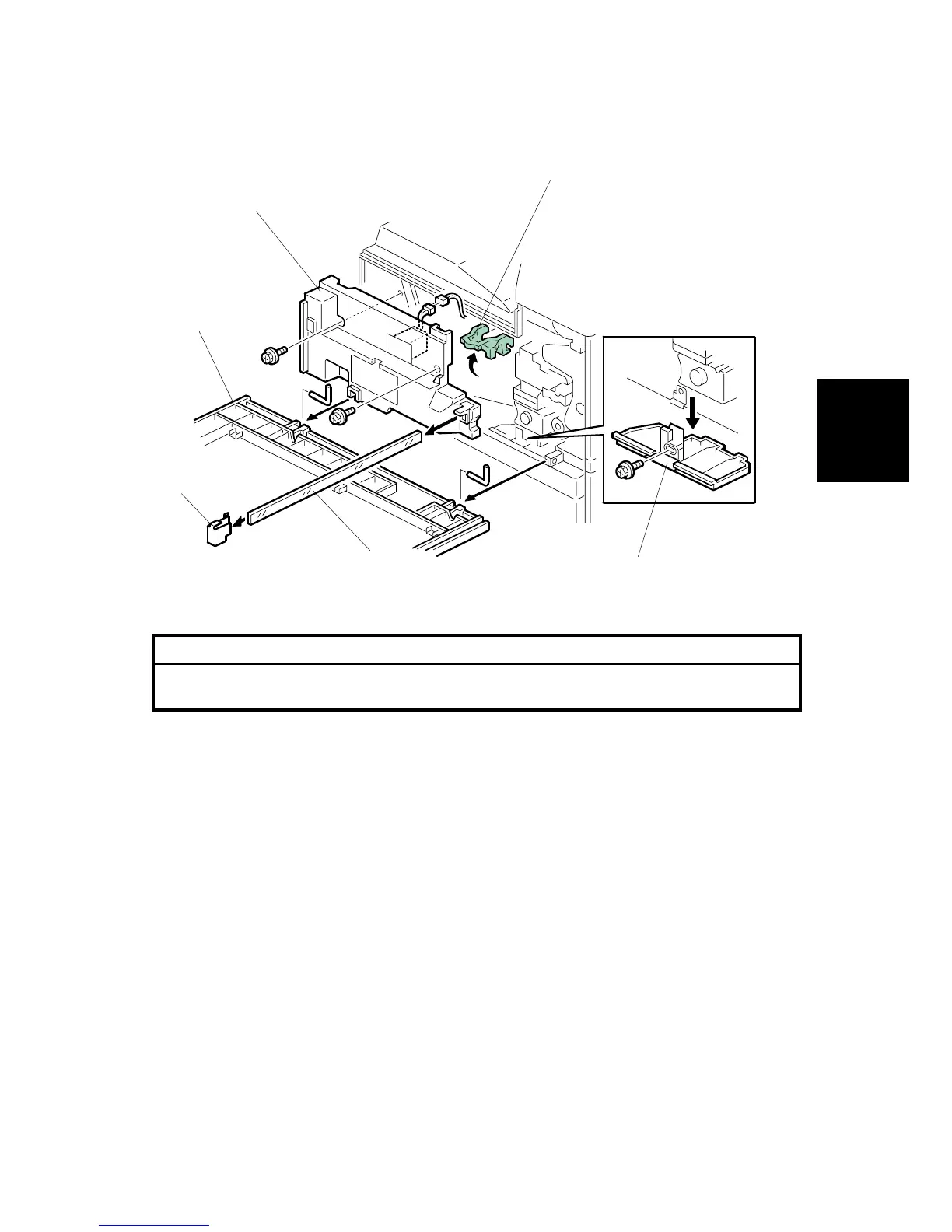 6. While pressing in the top leaf on the left side, remove the shield glass cover [E].