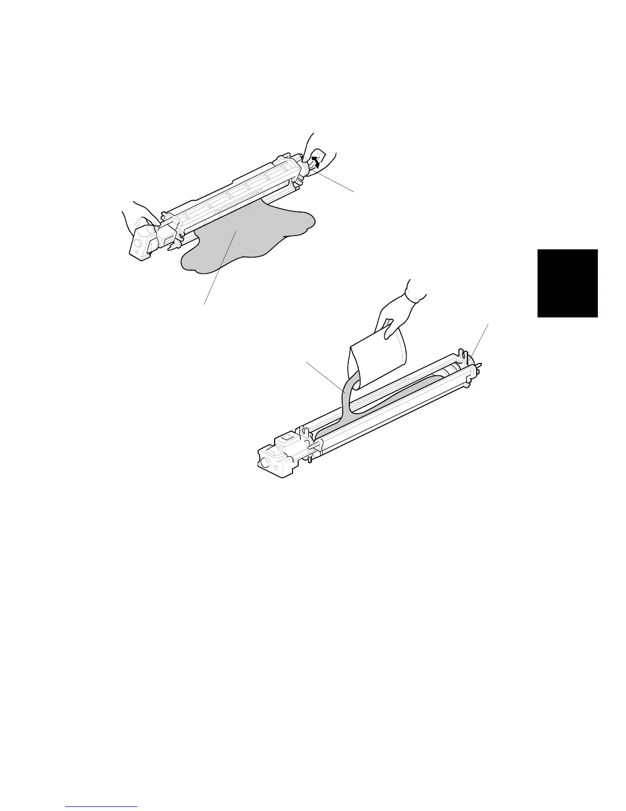 4. Turn drive gear [B] to ensure that no developer remains in the unit or on the