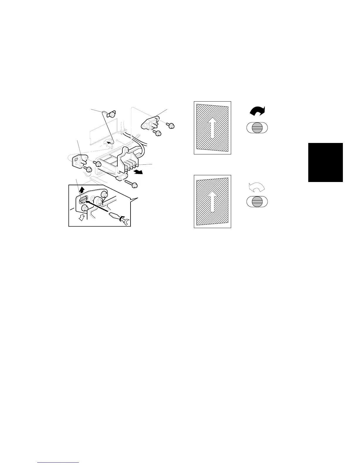 1) Adjust the laser unit position by turning the adjustment cam. (See the
