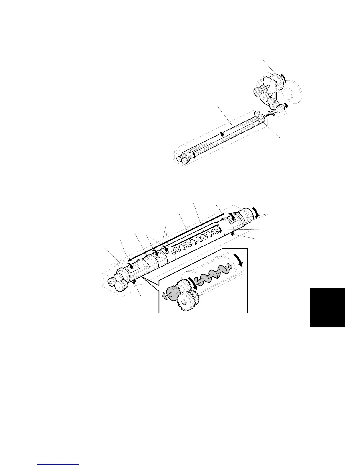 The dual mixing roller consists of the outer paddle [A] and the inner auger [B].