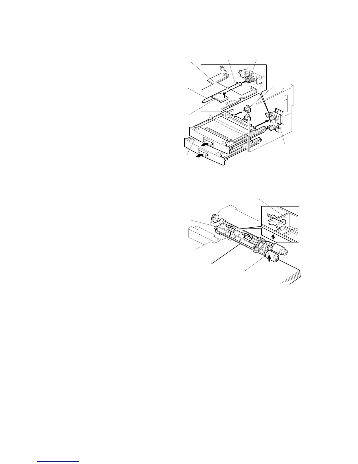 arm shaft [F]. Then the tray lift arm [G]