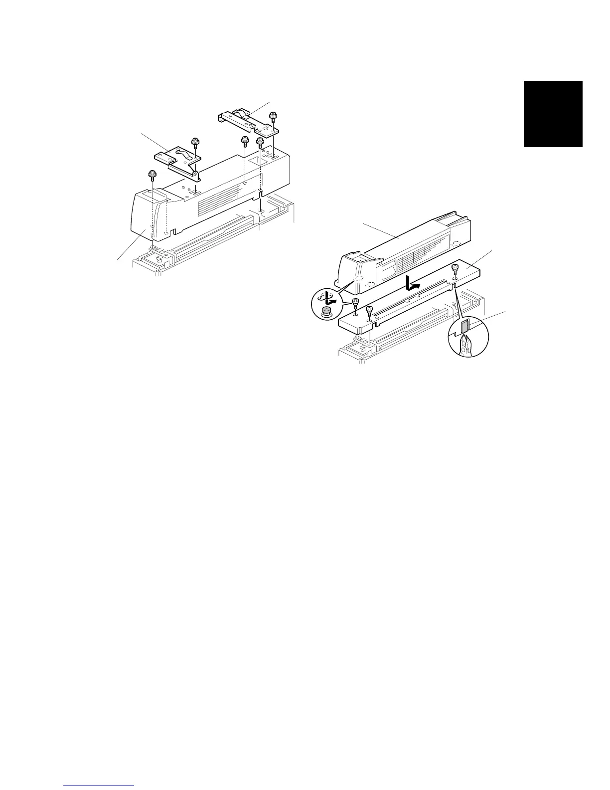 3. Remove the front bracket [A] (! x 1) and rear bracket [B] (! x 1) from the top of
