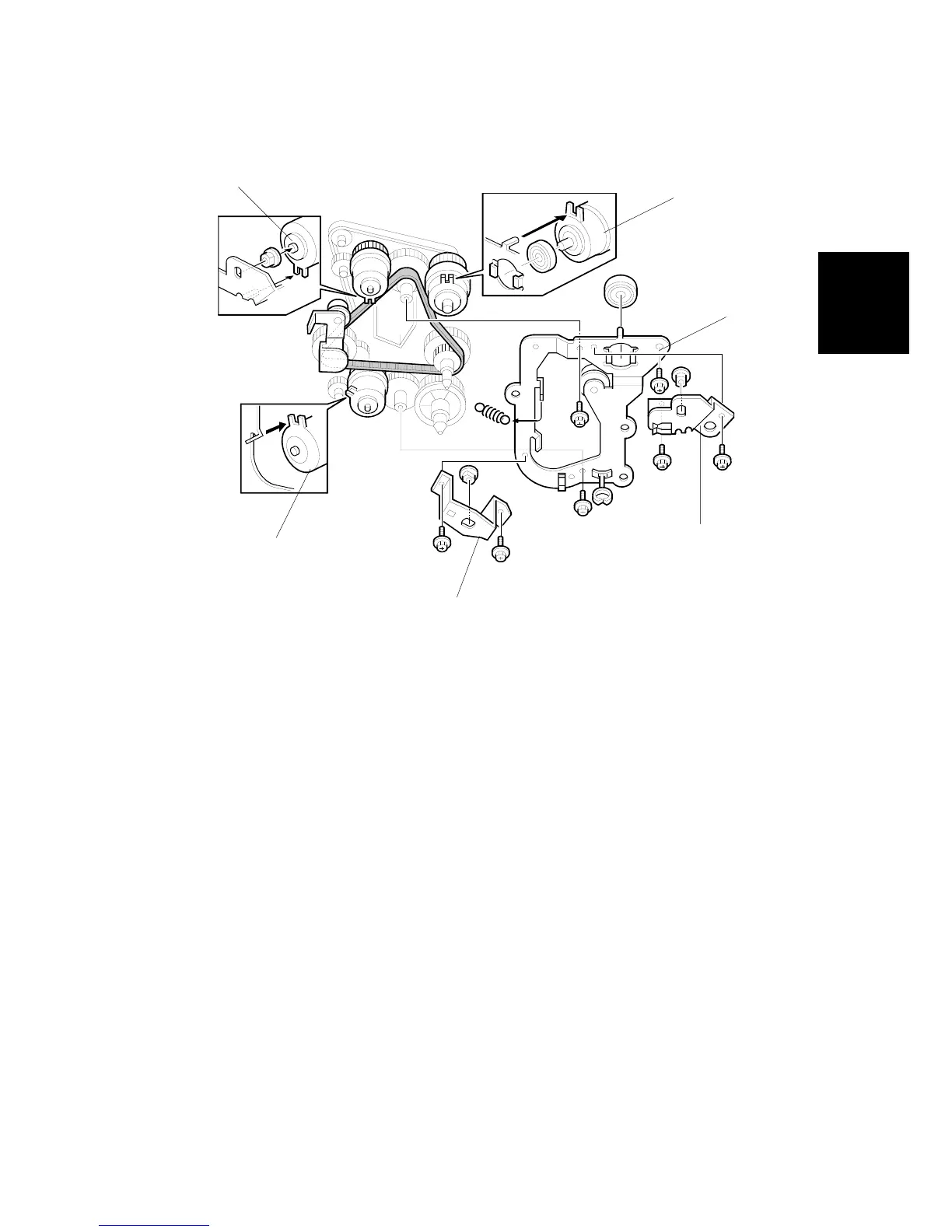 4. Remove the gear holder [C] (3 screws, 1 spring, 1 bearing).