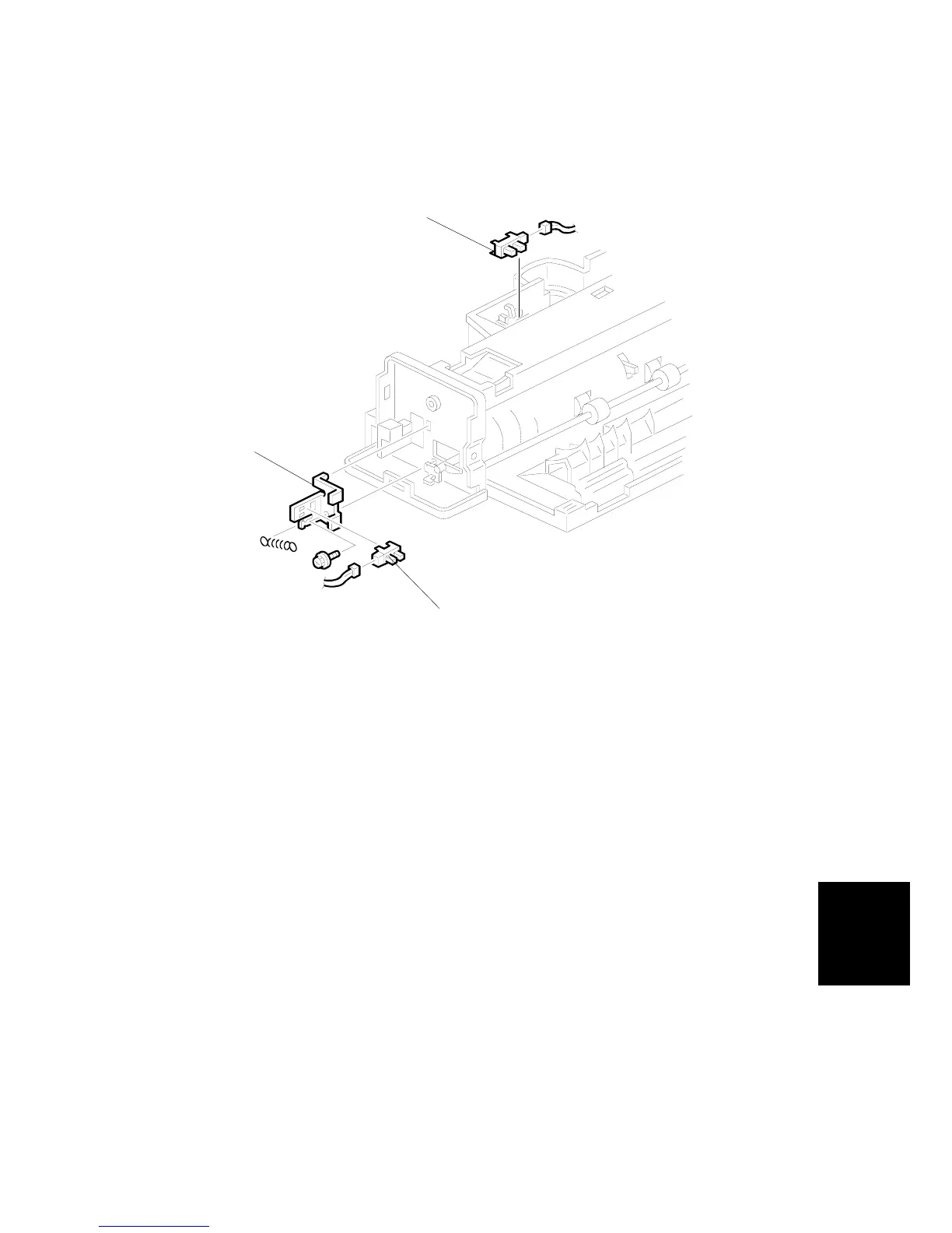 2. Remove the sensor bracket [B] (1 screw, 1 spring).