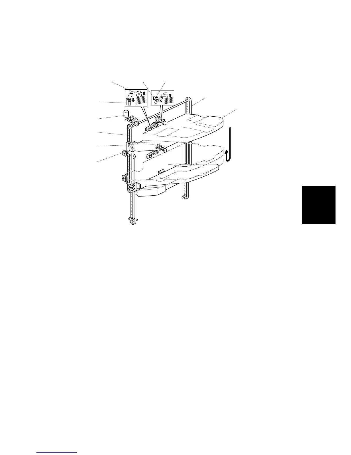 do this, the tray is moved up until upper stack height sensor 1 [D] is de-actuated.