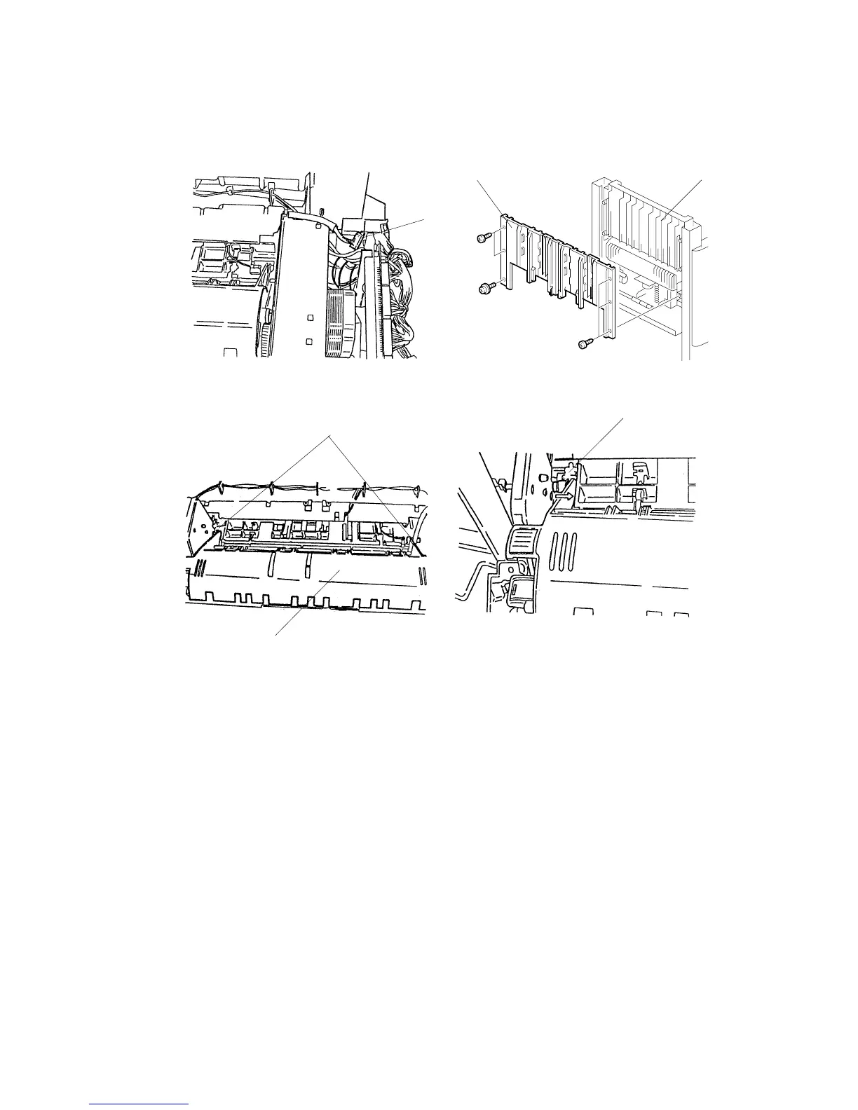 4. Unhook the shafts [D], and remove the buffer roller unit [E] (2 clamps).