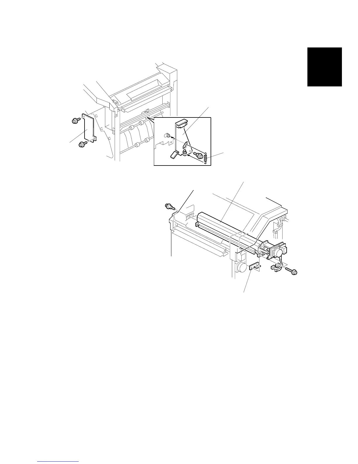 8. Install the punch unit [E] (! x 2, stepped ! x 1)