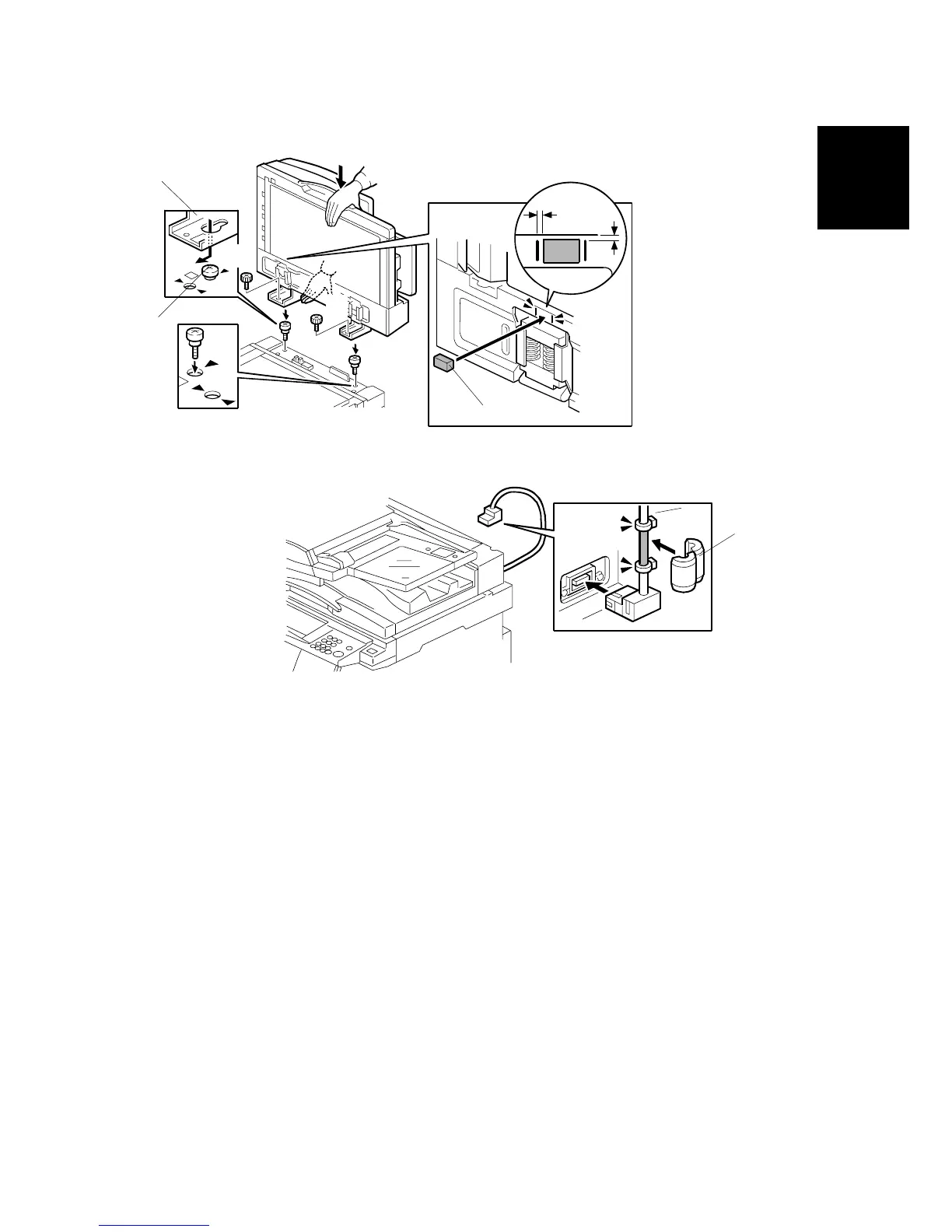 over the stud screws [B], then slide the ARDF toward the front of the machine.