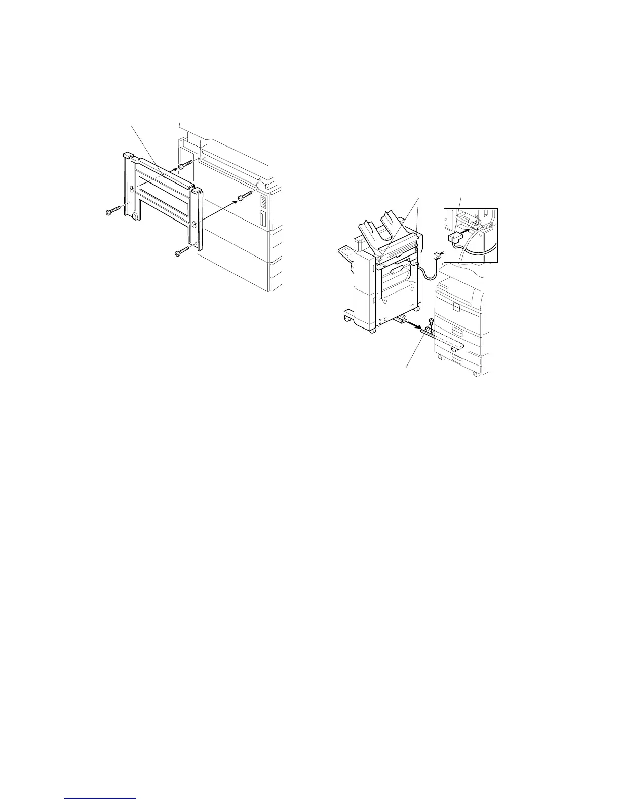 17. Install the joint bracket [A] on the left side of the copier (! x 4).