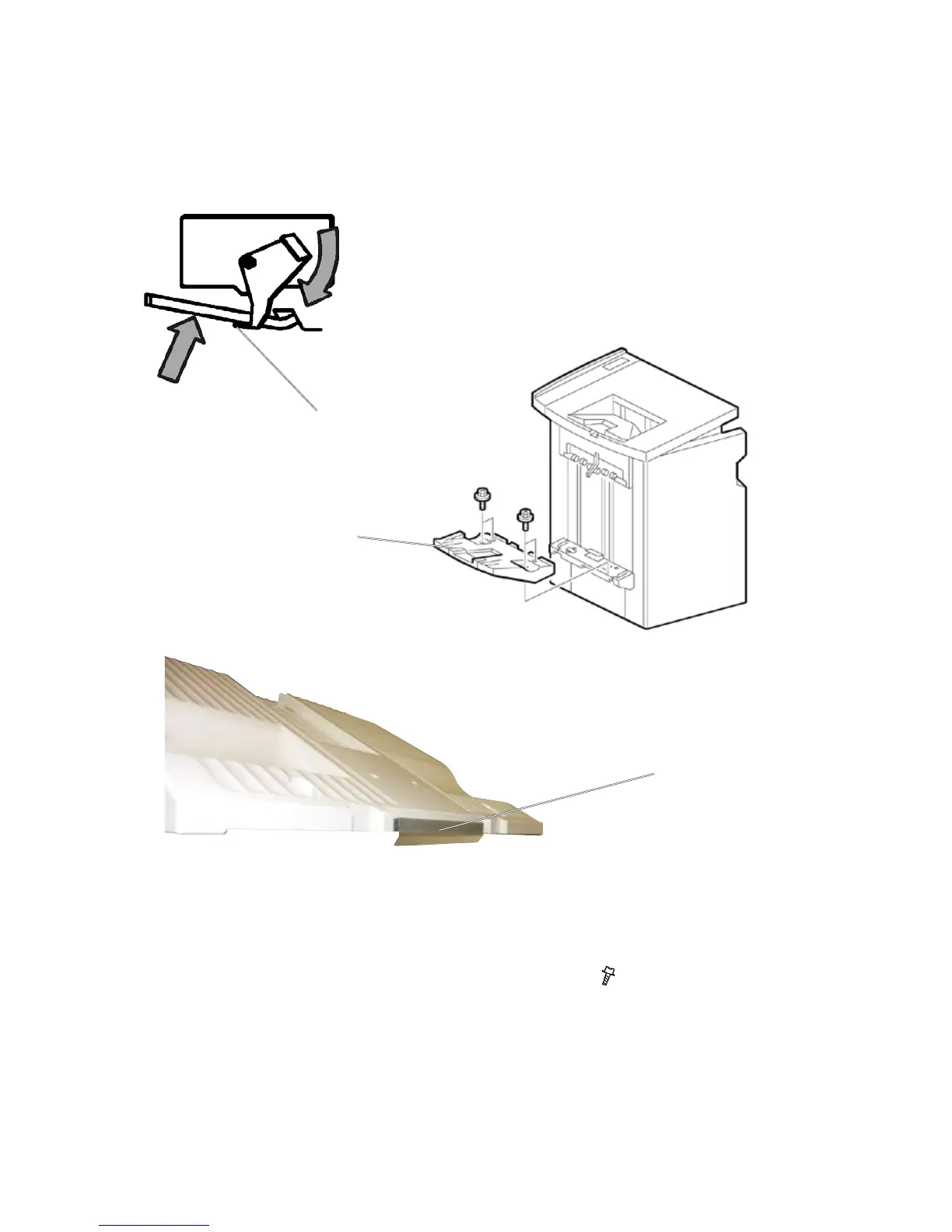 3. Remove the plastic deector [C], on the nisher exit tray.
