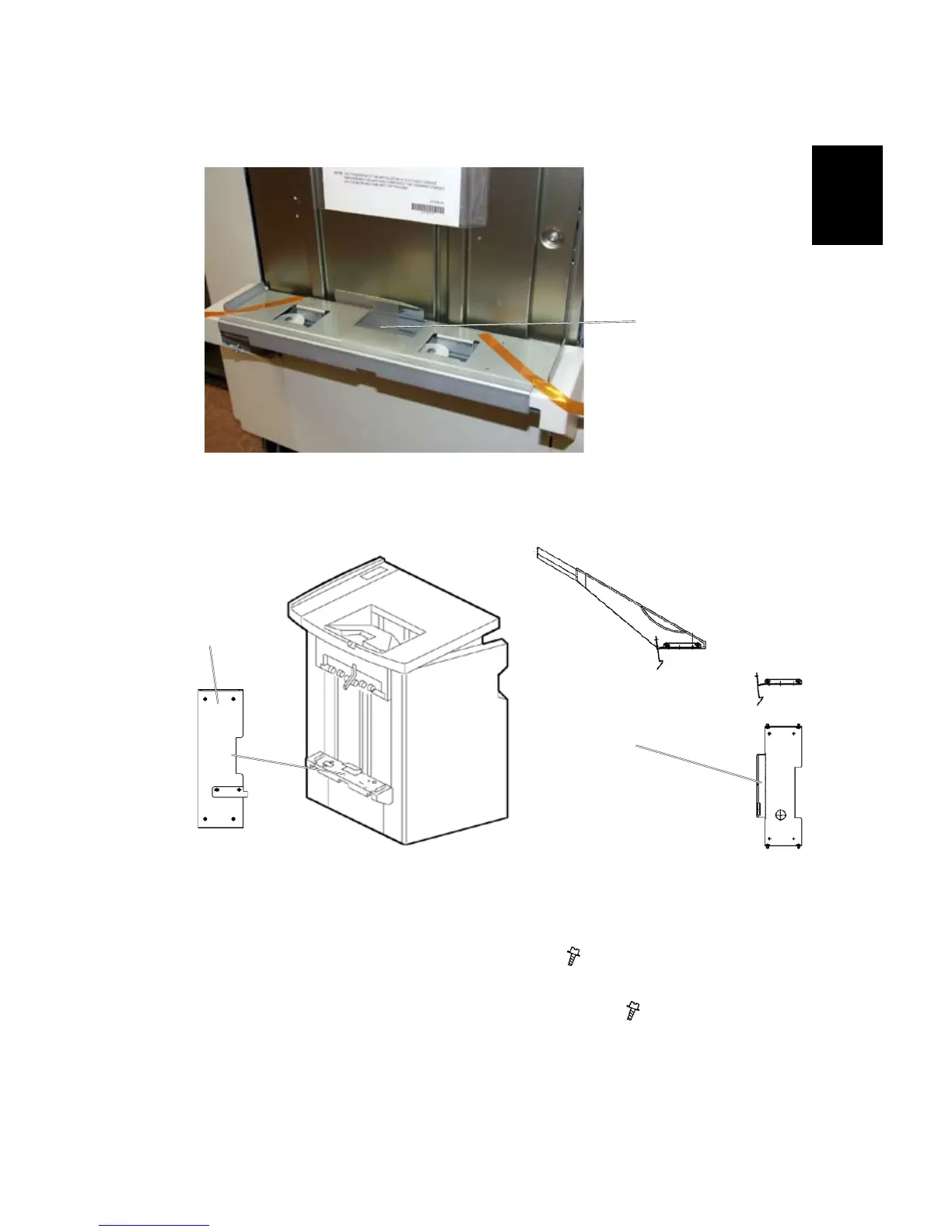 6. Install the Exit tray plate [F] on to the nisher exit tray (