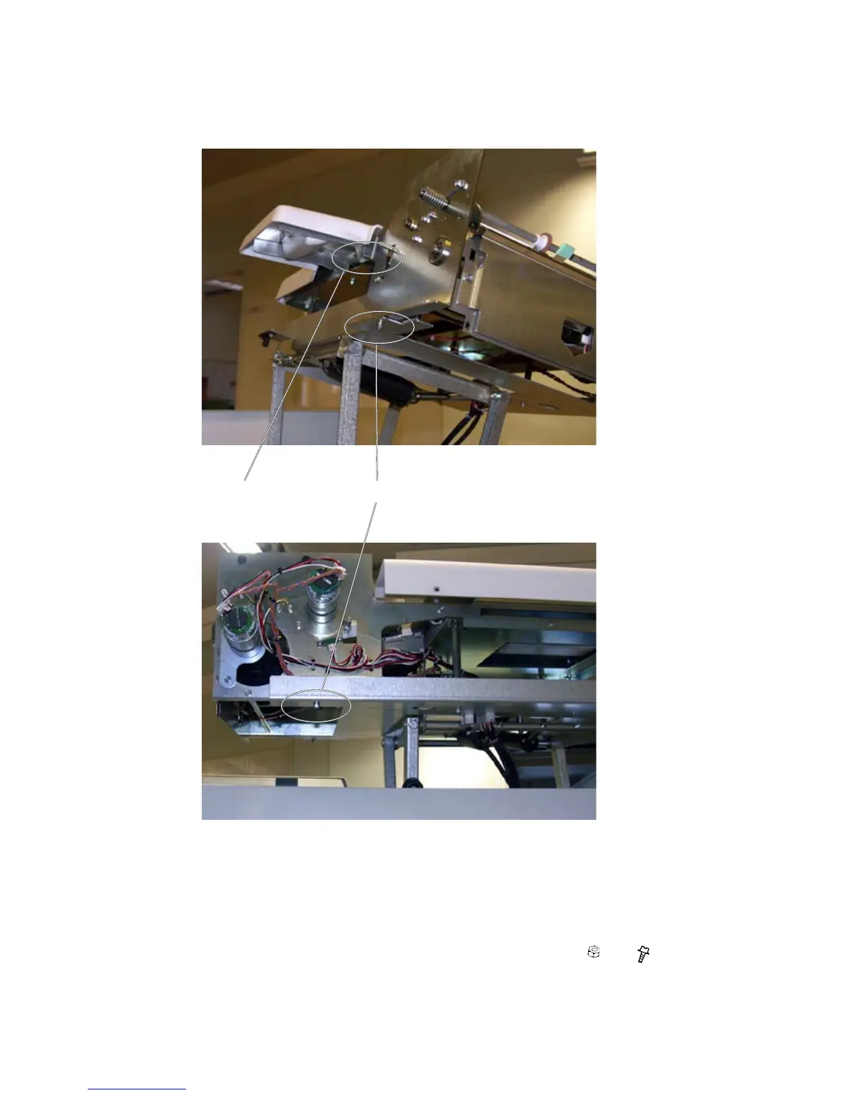 2. Secure the Cover Feeder with the nut [D] and the screws [E] ( x 1, x 2).