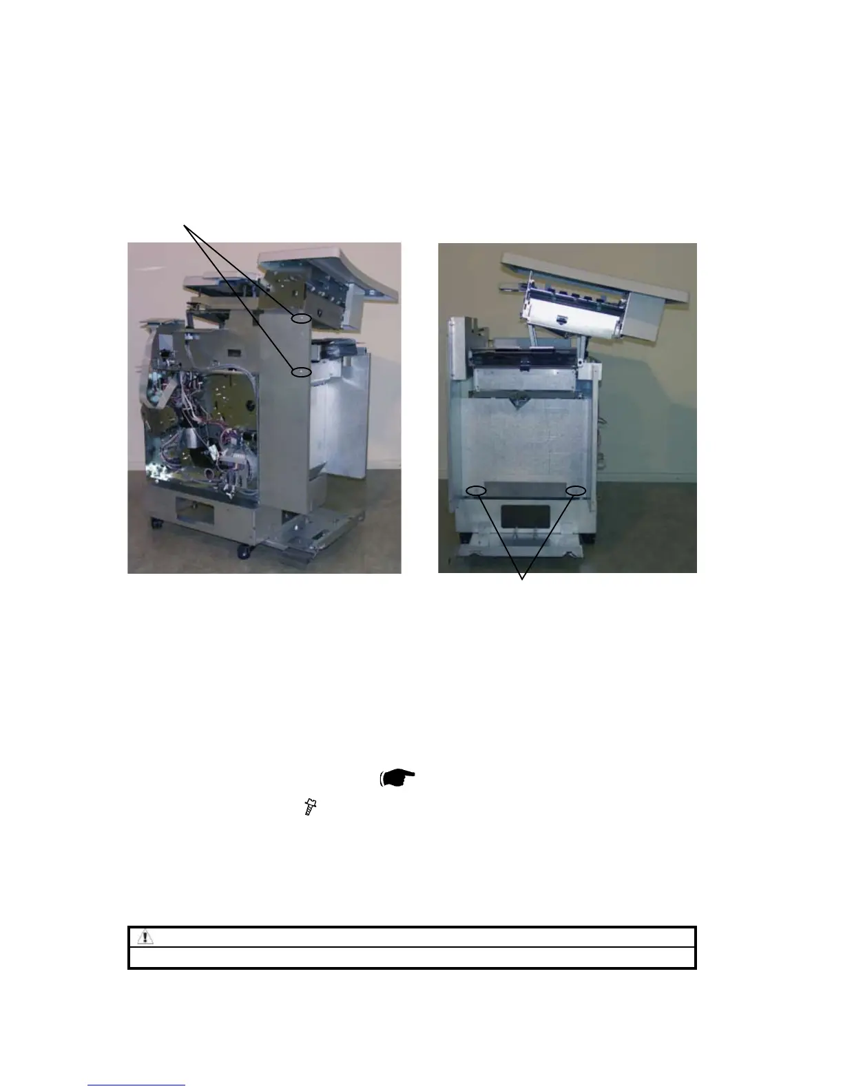 Infeed cover is very heavy and could cause injury if it falls down.