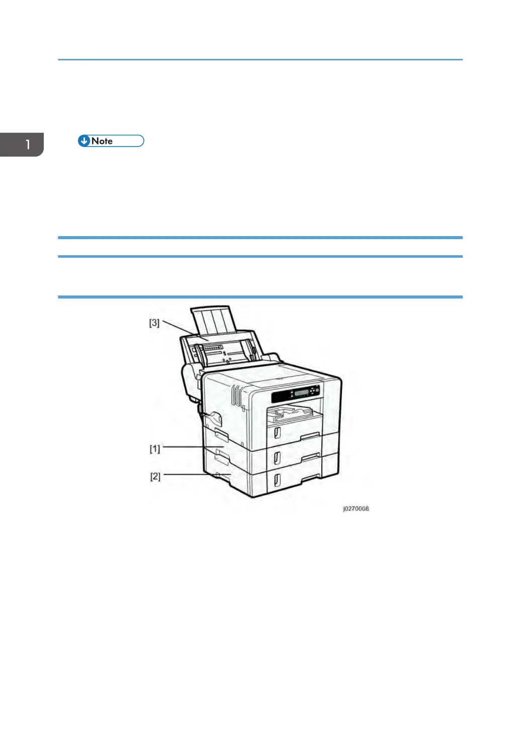 The Paper Feed Unit TK1160 (J312) is used with the J028/J029/J035. One [1] or two [2] paper feed