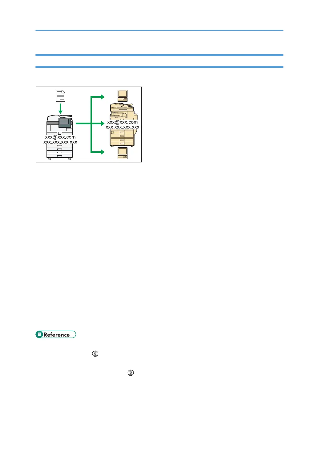 For details about how to transmit and receive documents over the Internet, see “Transmission” and