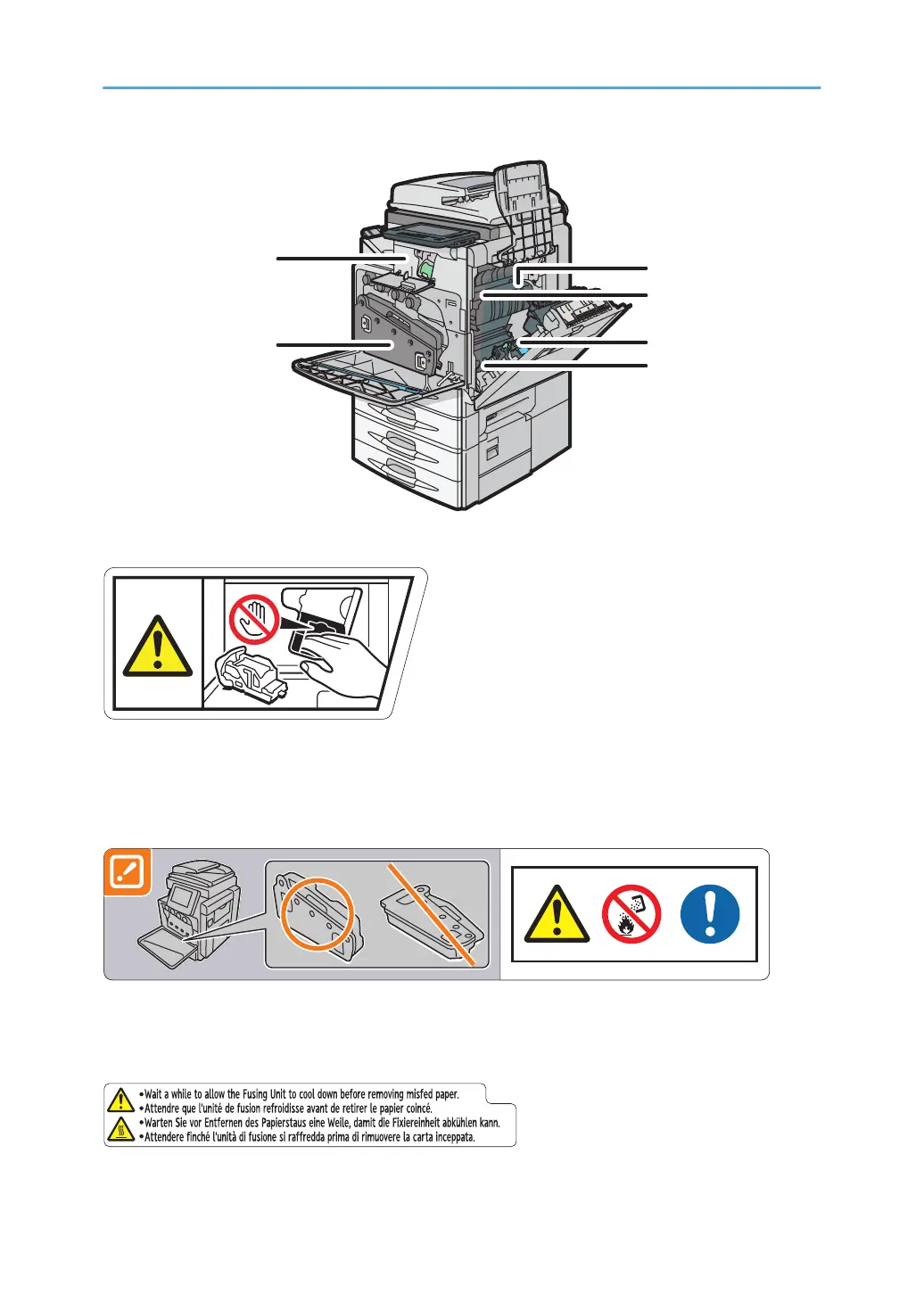 Do not incinerate spilled toner or used toner. Toner dust might ignite when exposed to an open flame.