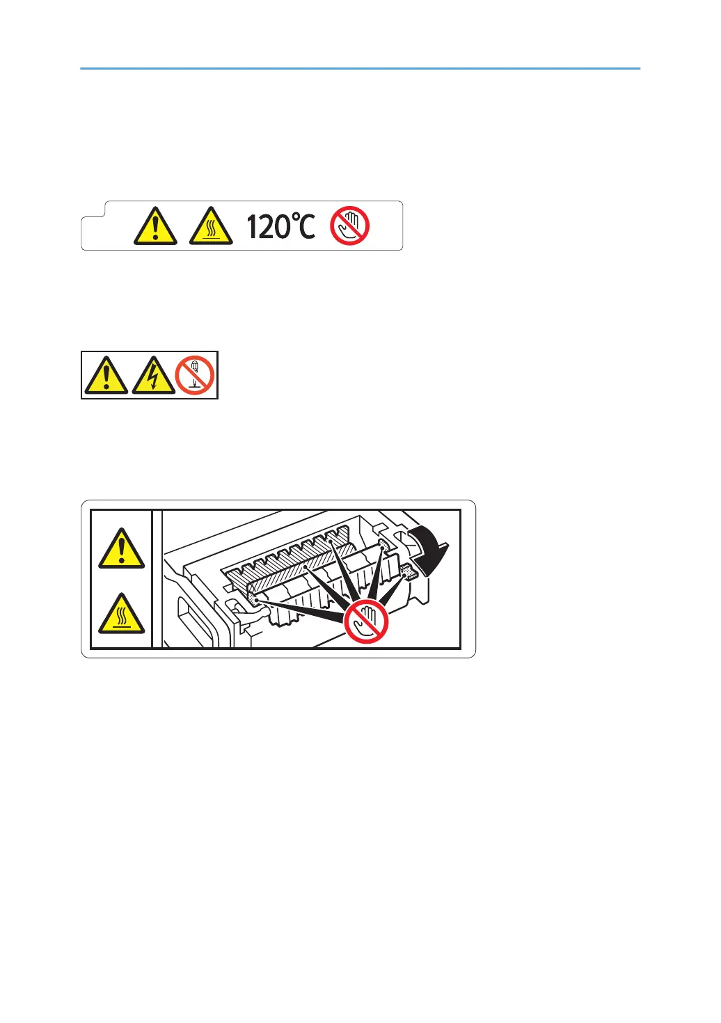 The inside of the machine could be very hot. Do not touch the parts which a label is put on. Otherwise, an