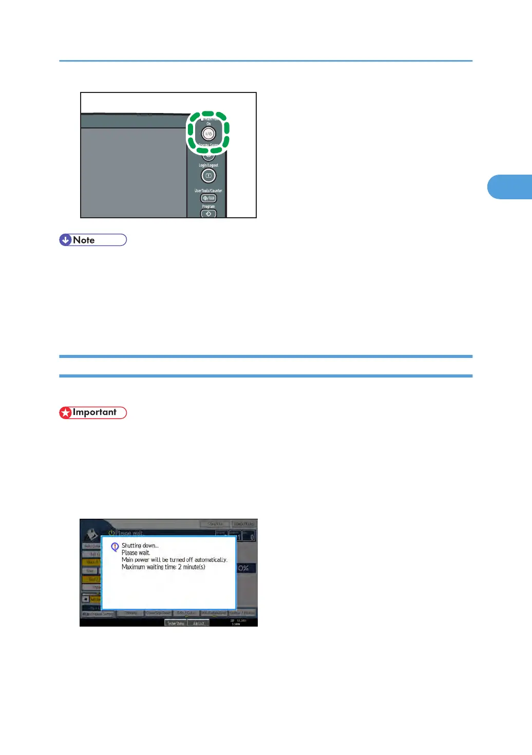 • Do not turn off the main power switch while the machine is saving data. Doing so risks data corruption