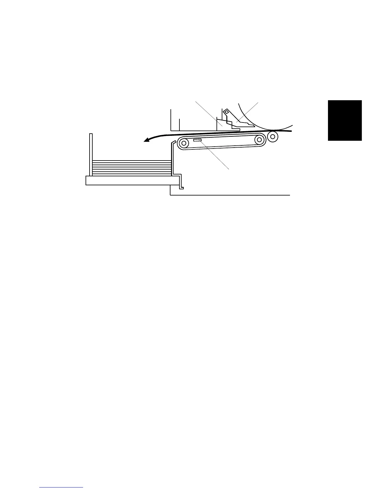 The exit pawl [A] and the air knife [B] separate the paper from the drum. The paper