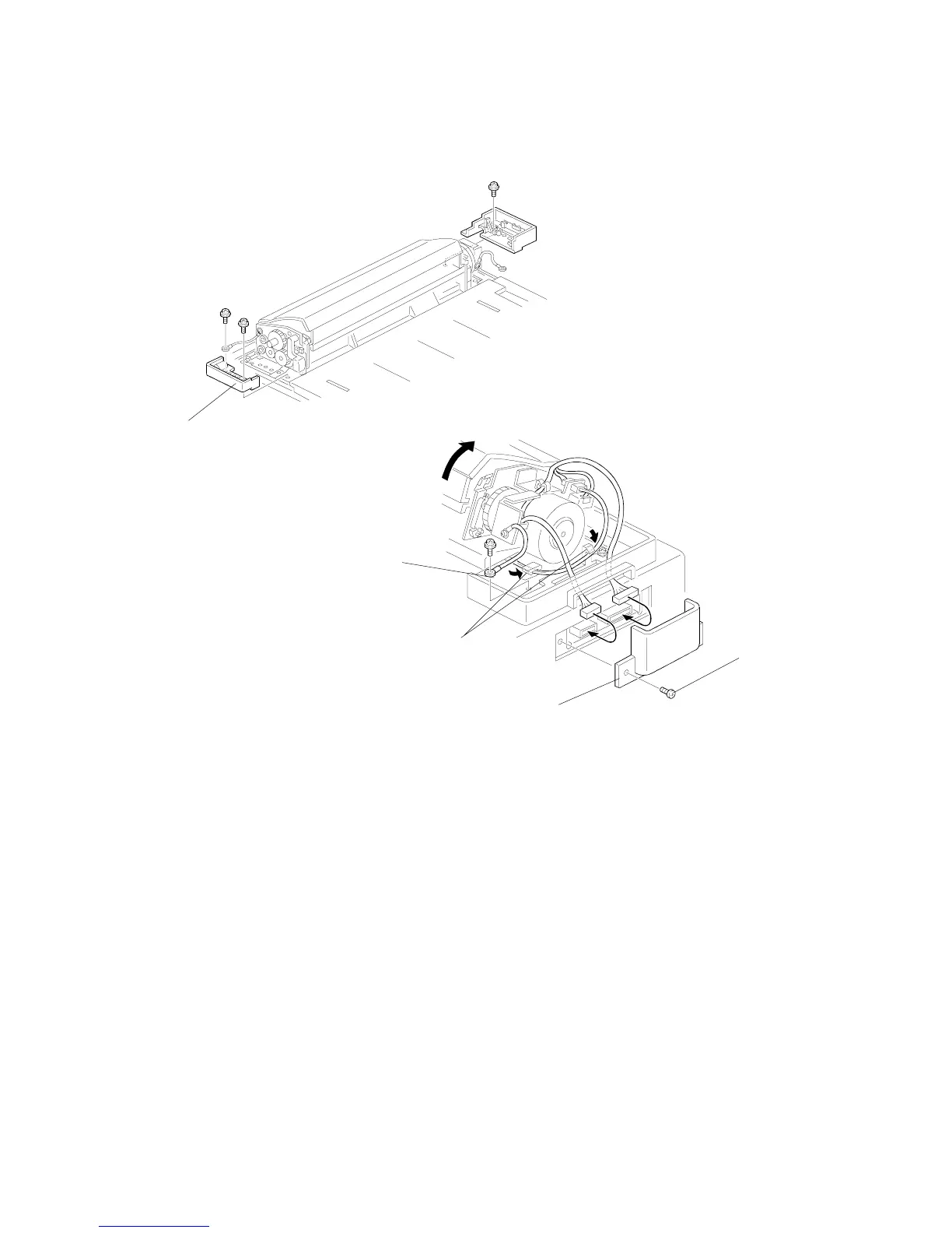 6. At the non-operation side of the ADF unit, secure the harness with the two