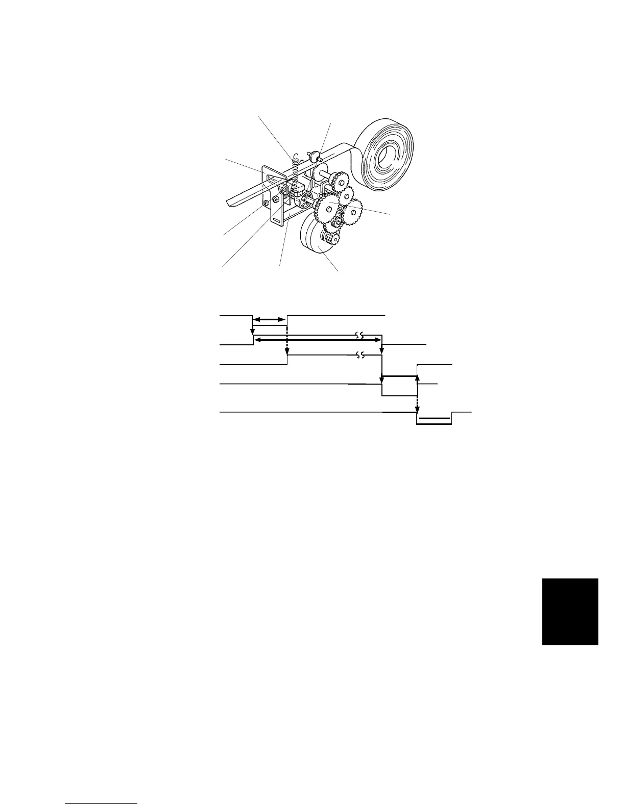 drive motor [A] starts to rotate counterclockwise to feed tape. However, since a