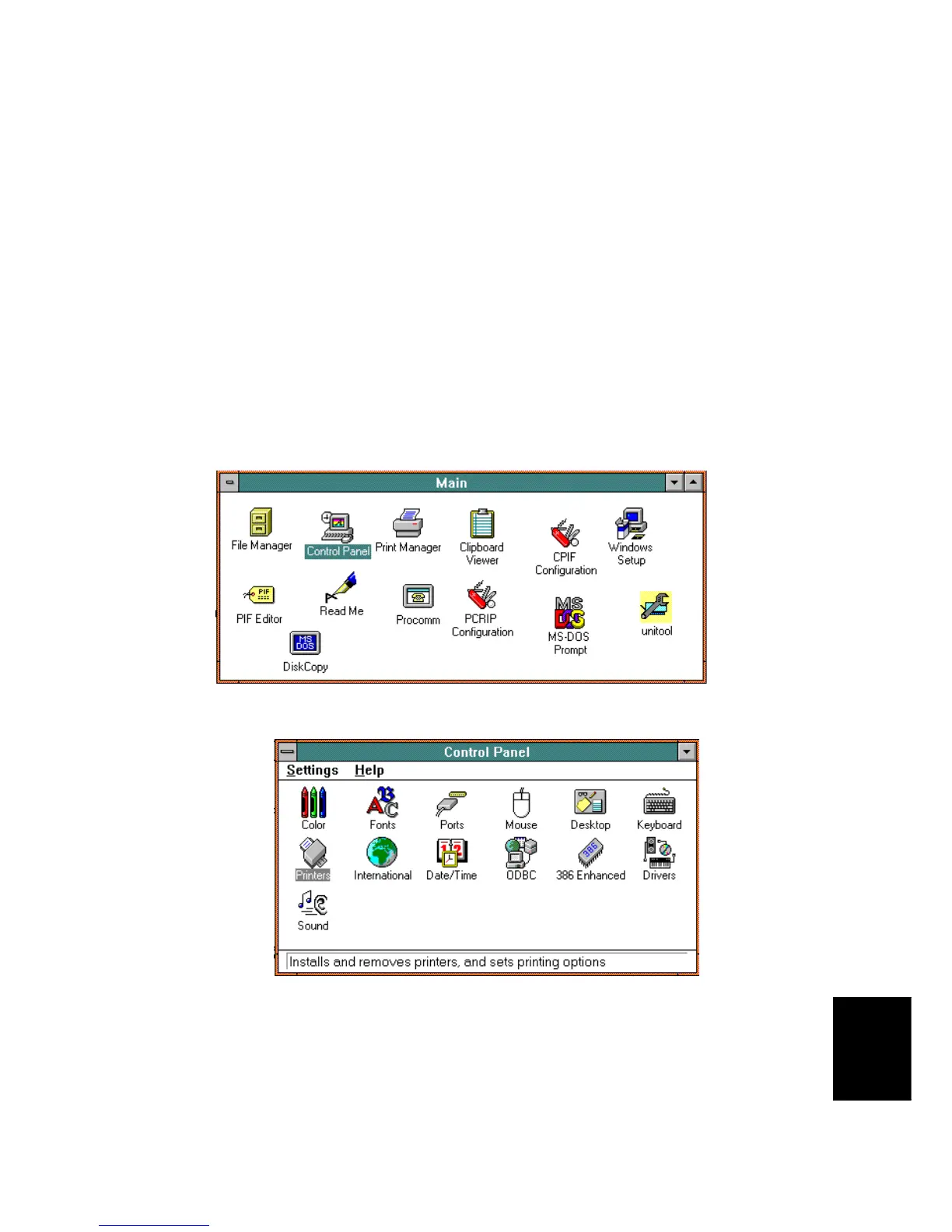 drivers are installed into the Windows 3.1, Windows 95 or Macintosh system folder using the following