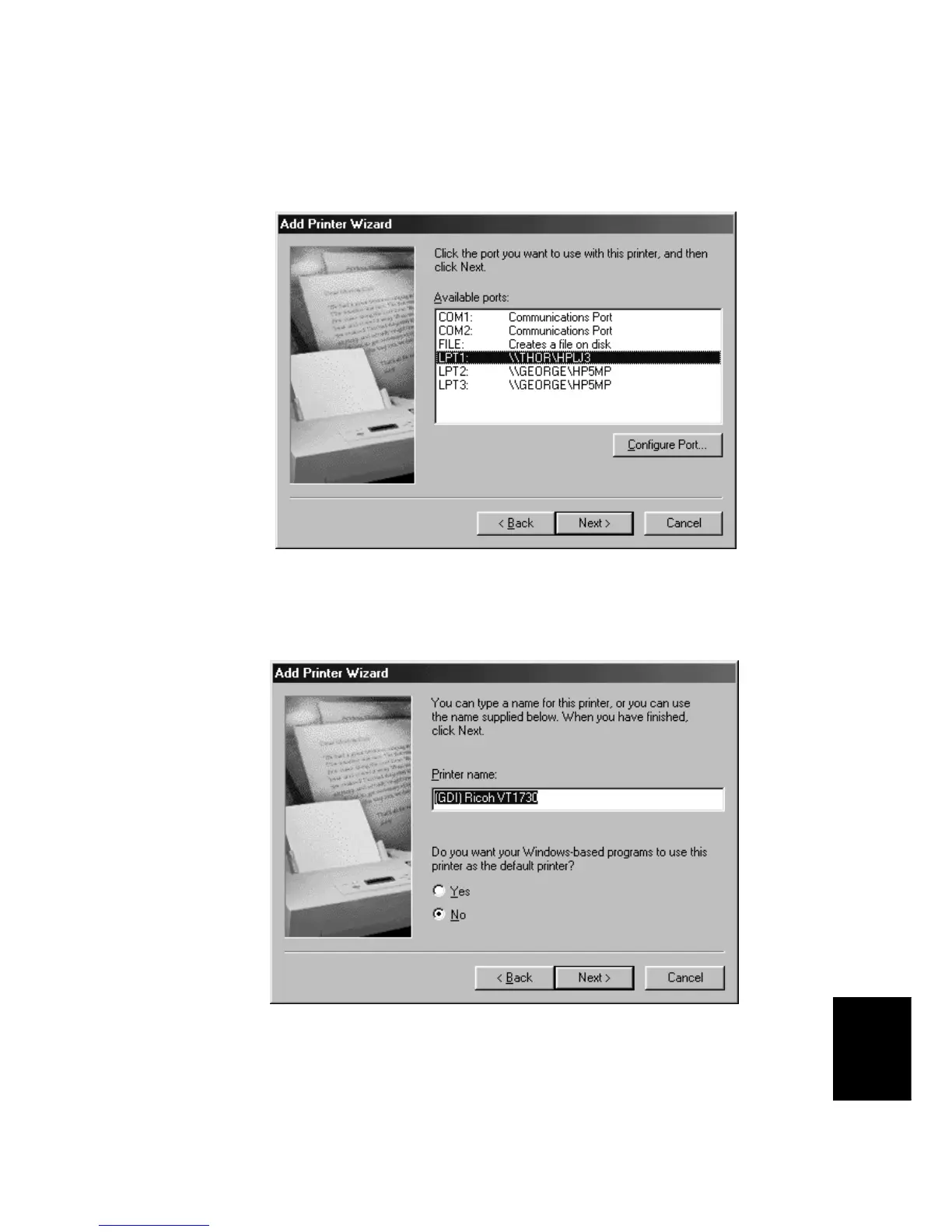 provided by the driver. You may also choose the Priport as your default printer here. Click
