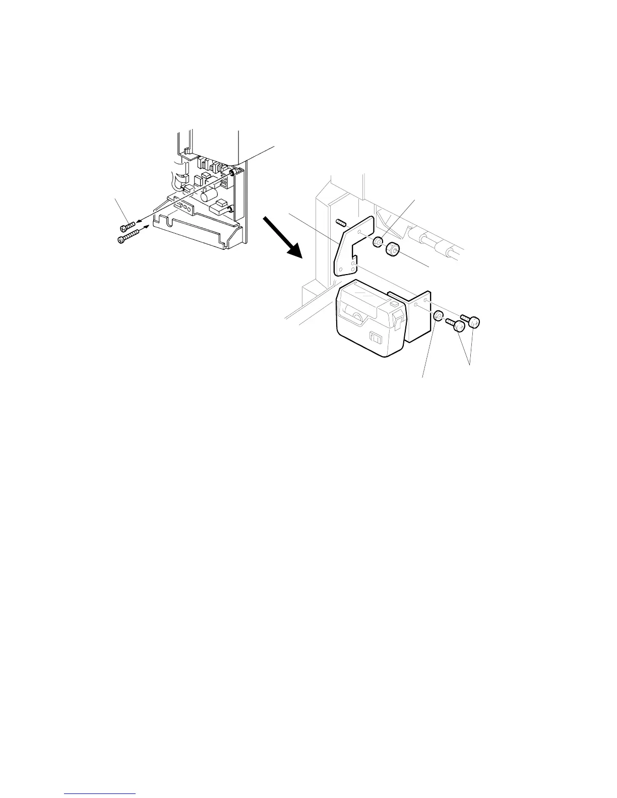 6. Install the tape marker on the auxiliary bracket with two M4 x 8 screws [E]