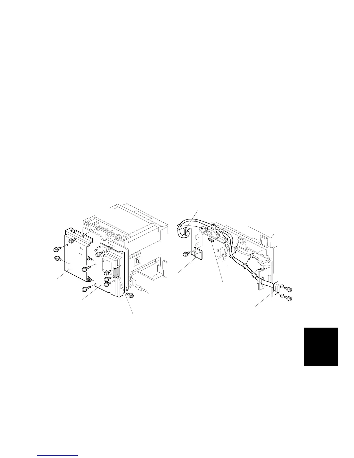 3. Install the I/F board [D] (accessories) in CN117 [E] on the MPU (2 screws).