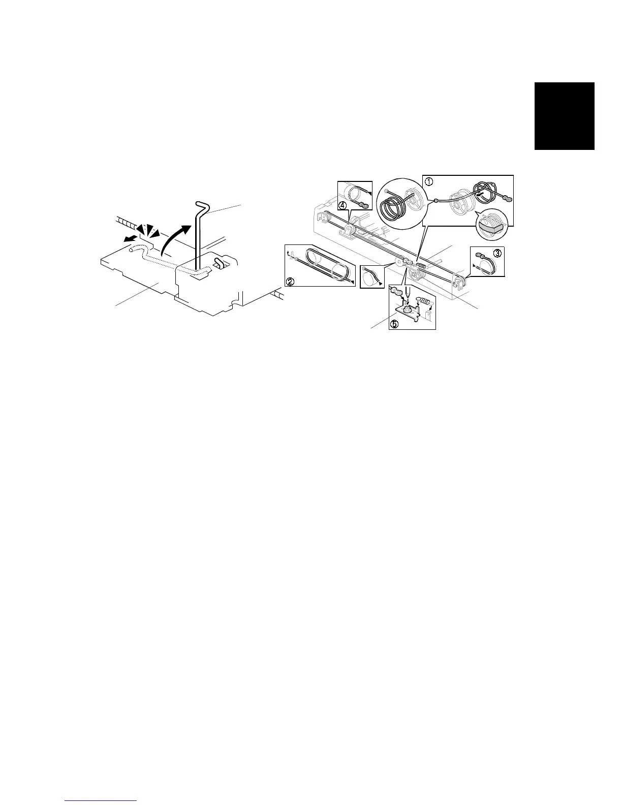6. Connect the tension spring to the wire tension bracket (