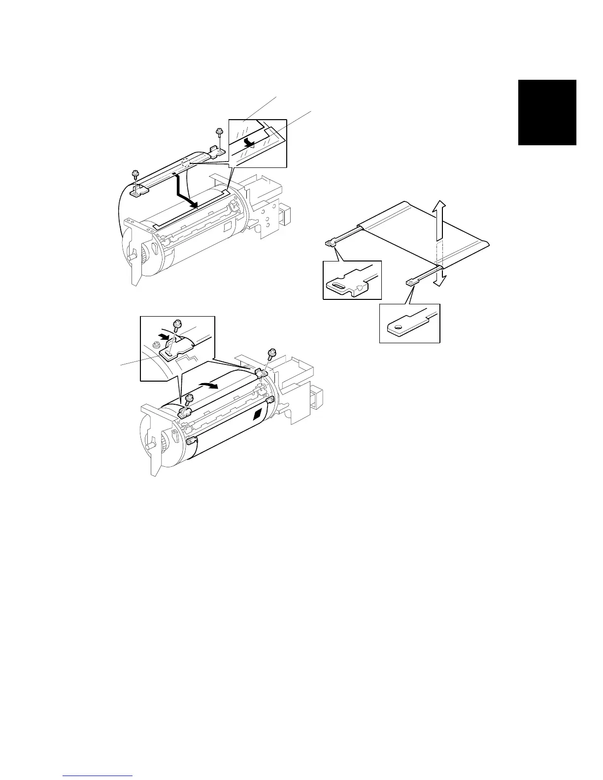 Properly insert the edge of the mylar [A] on the cloth screen under the mylar [B]