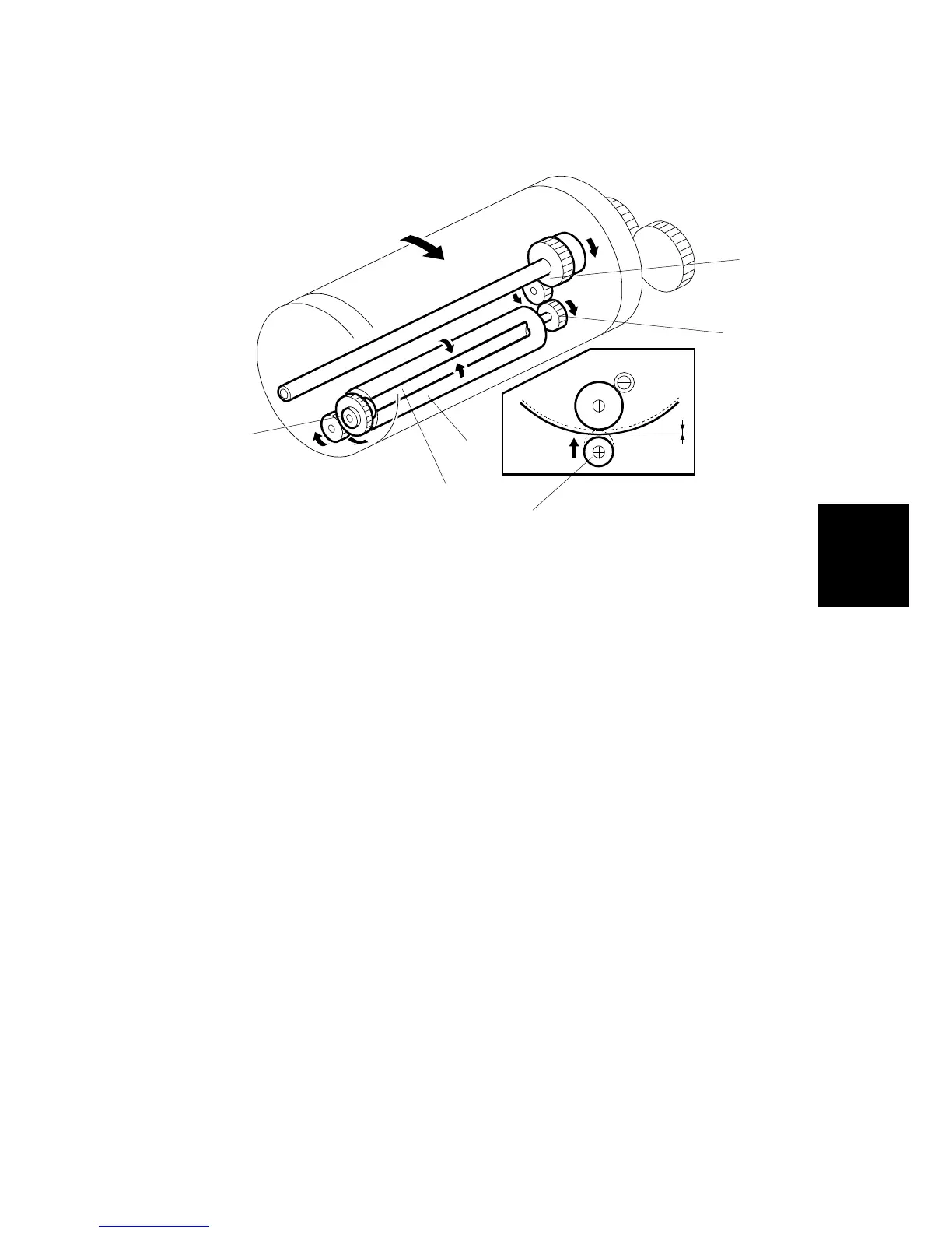 1) The ink roller drive gear [E] has a one-way clutch to prevent the ink