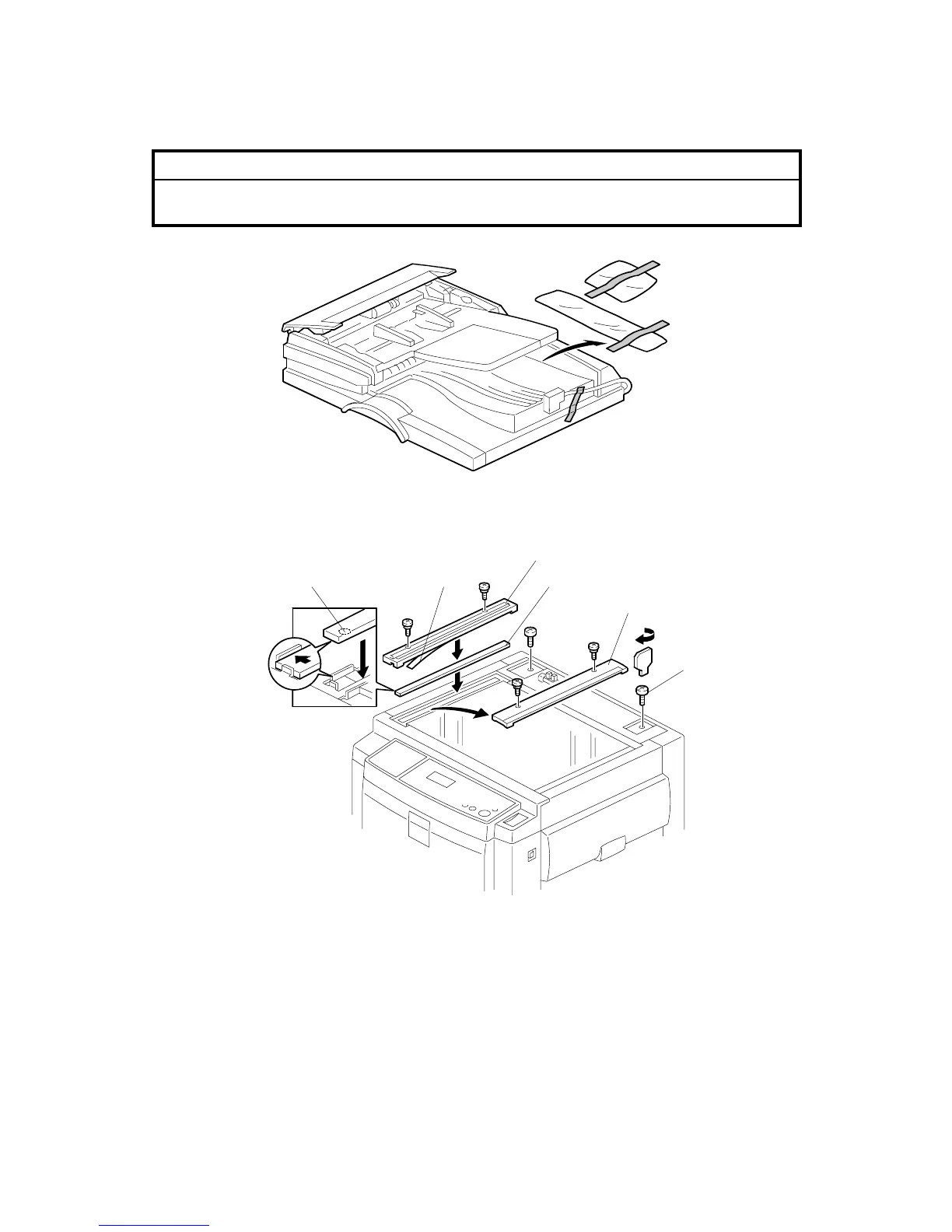 NOTE: When installing the DF exposure glass, make sure that the white dot [C] is