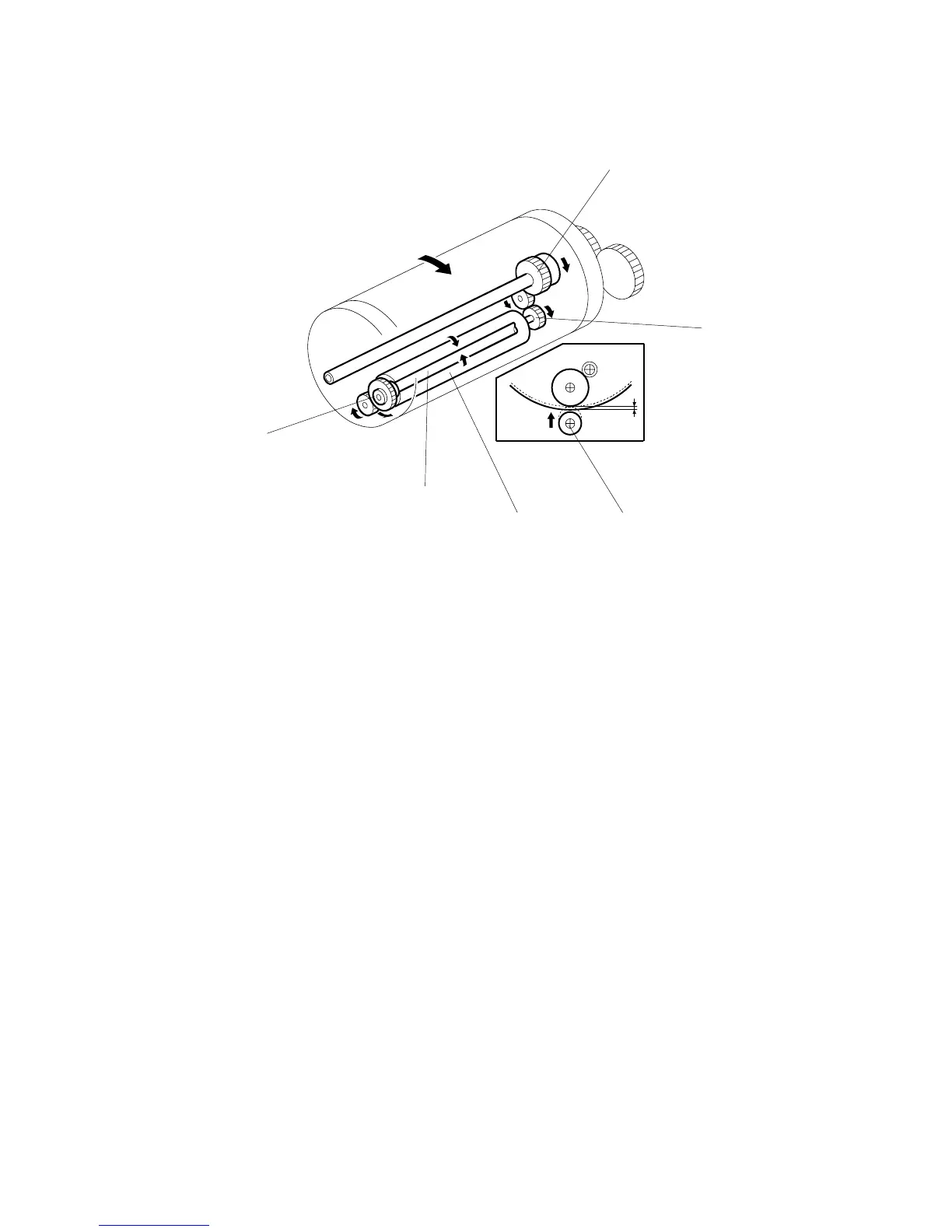 1) The ink roller drive gear [E] has a one-way clutch to prevent the ink rolle