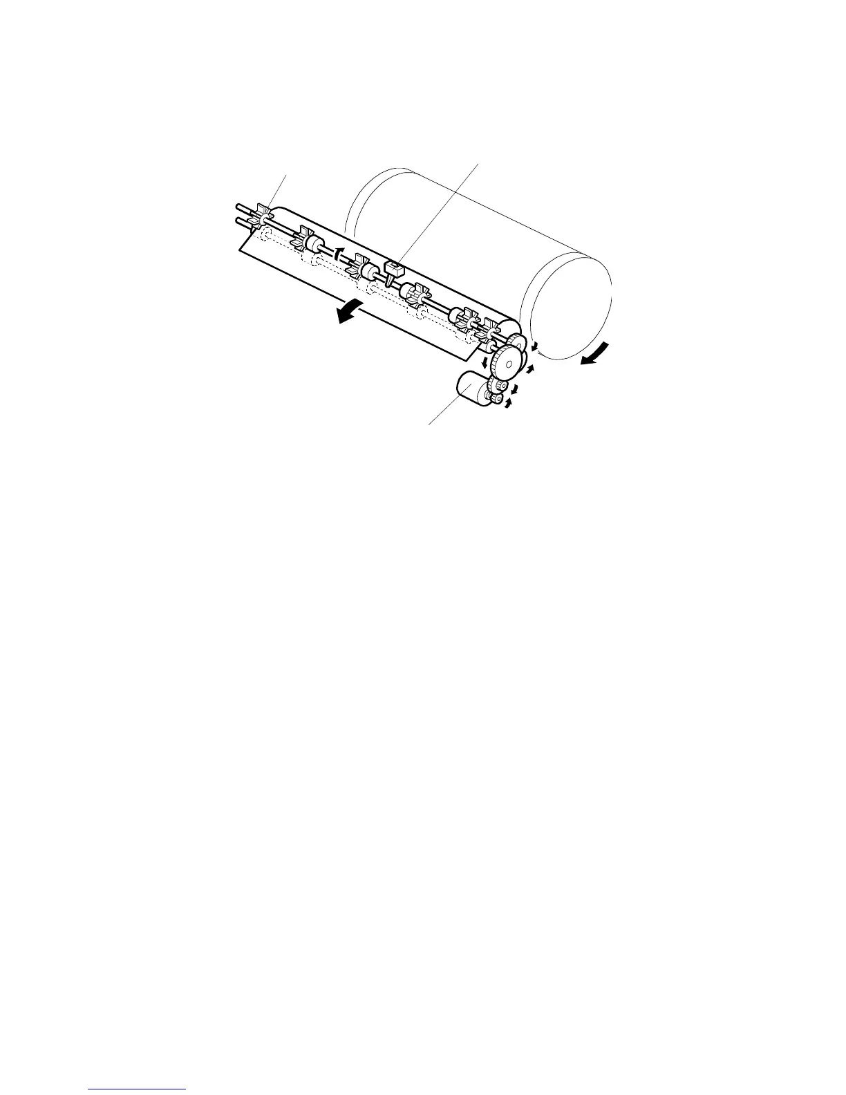 The master eject rollers are driven by the master eject motor [A] through idle gears.