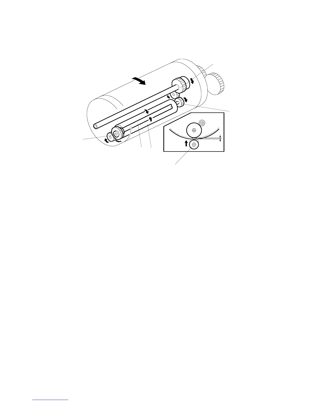 1) The ink roller drive gear [E] has a one-way clutch to prevent the ink