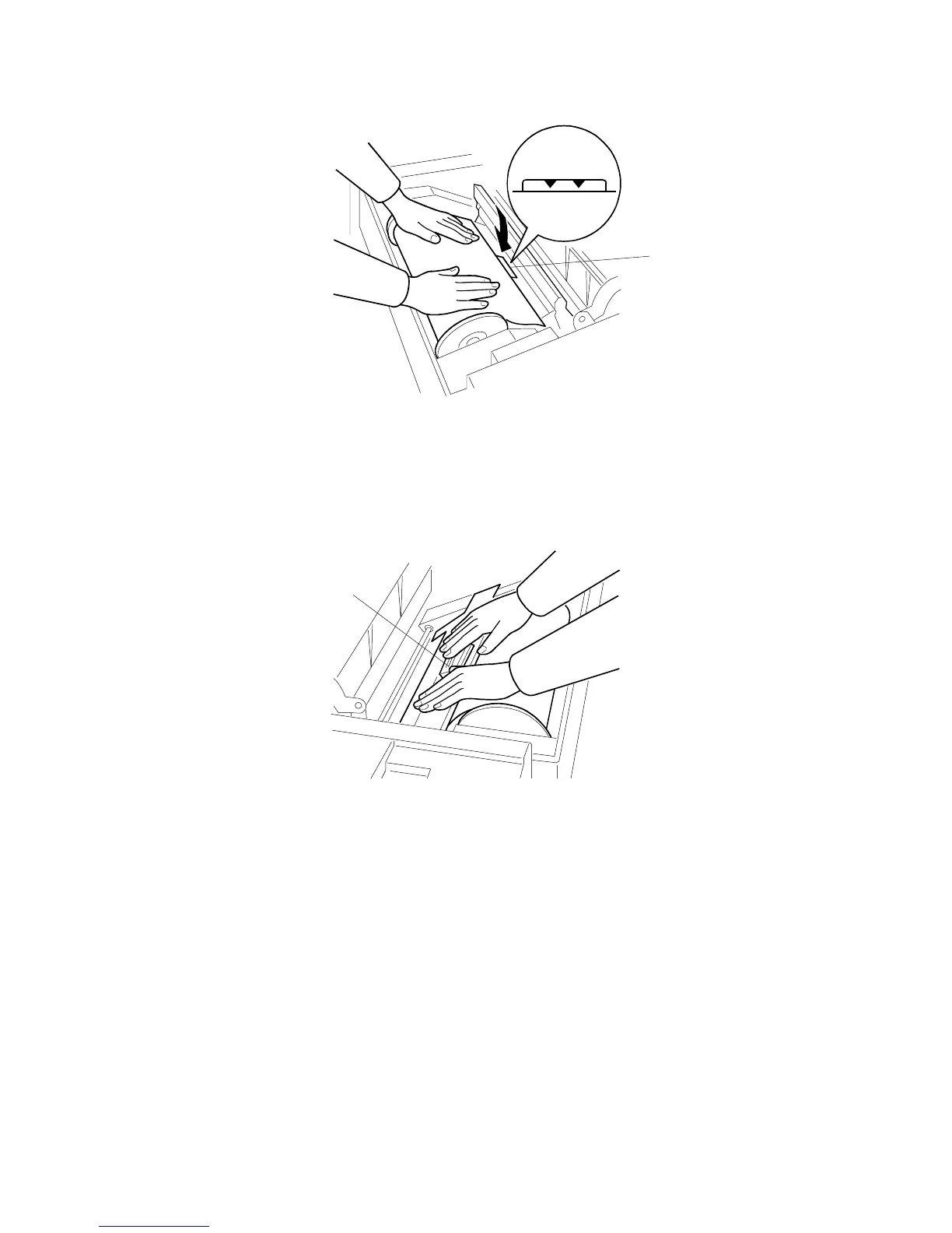 roll under the platen roller. The arrows [A] indicate the correct position of the