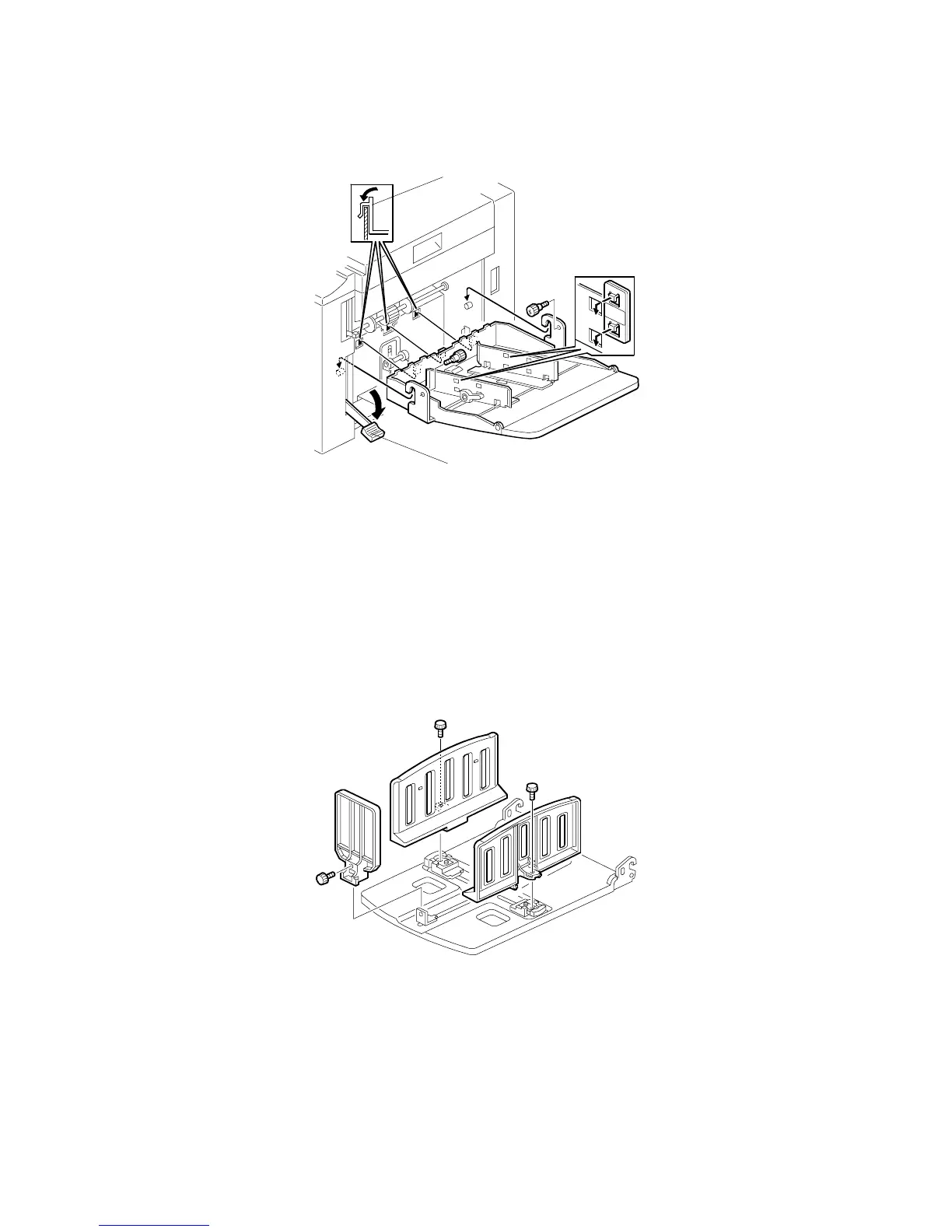 13. Lower the paper feed tray adjustment lever [A], and install the paper table. ( x