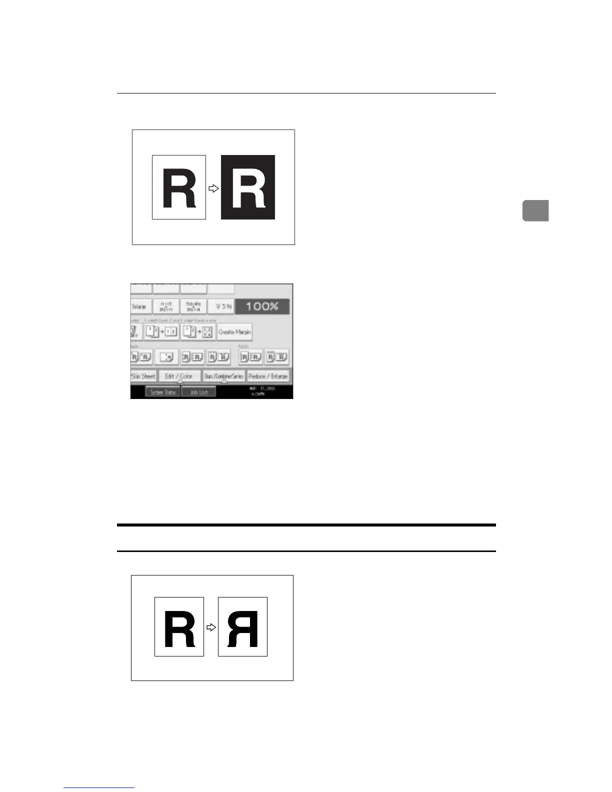 Copies by reversing the image from left to right, as reflected in a mirror.