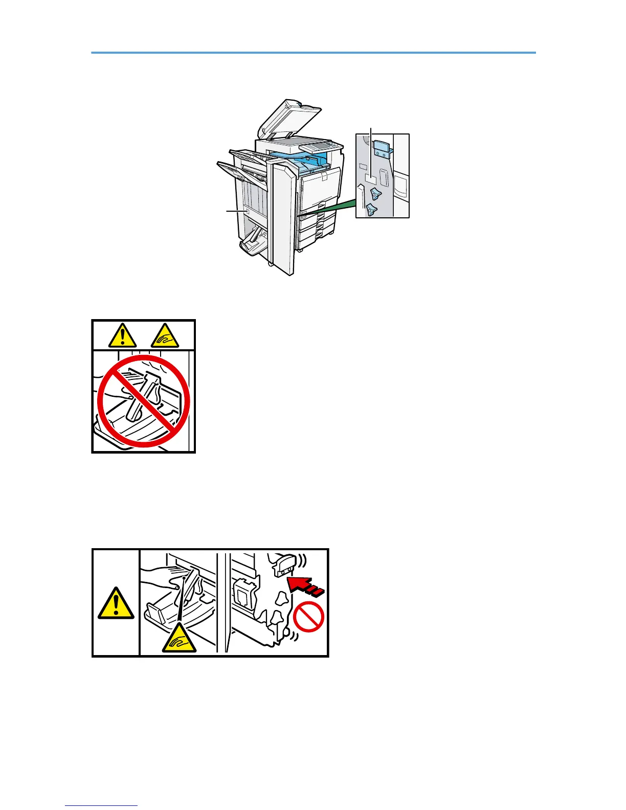 or removing paper jam. You might trap your fingers if you do not. Take care not to touch the booklet finisher
