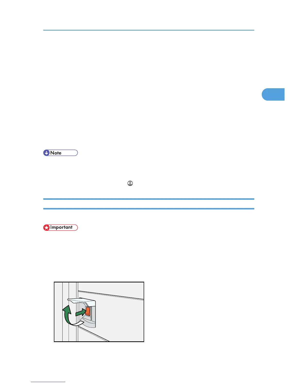 • Do not turn off the main power switch immediately after turning it on. Doing so may result in damage