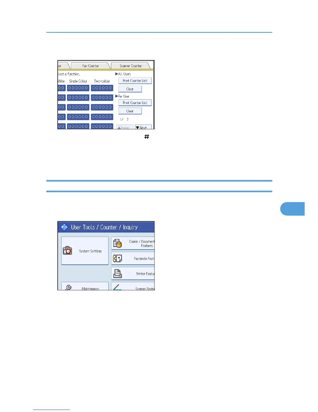 6. Select the function usage you want to print from [Copier Counter], [Print Counter], [Fax