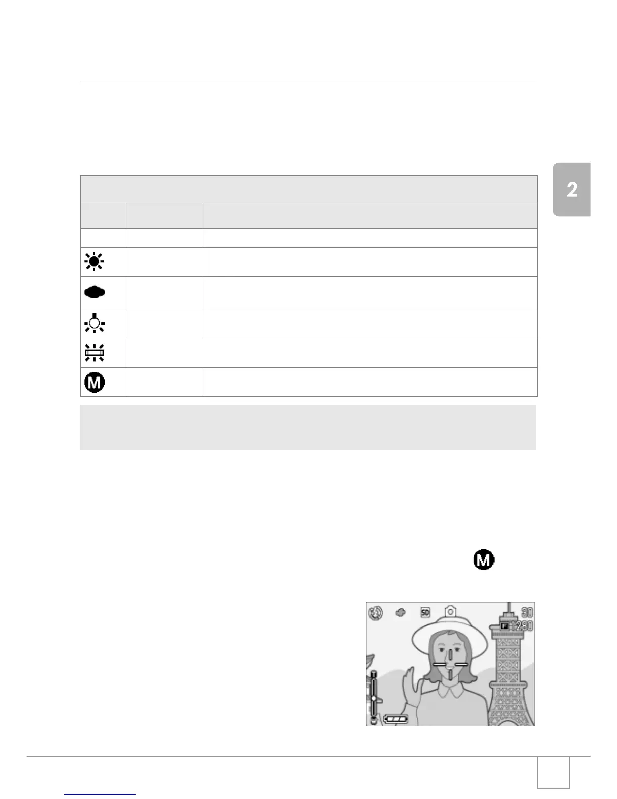 At purchase, the White Balance is set to “AUTO”; normally you do not need to