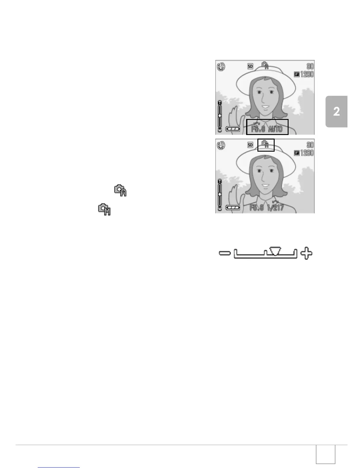 The indicator range is from -2EV to +2EV. If the exposure level is outside