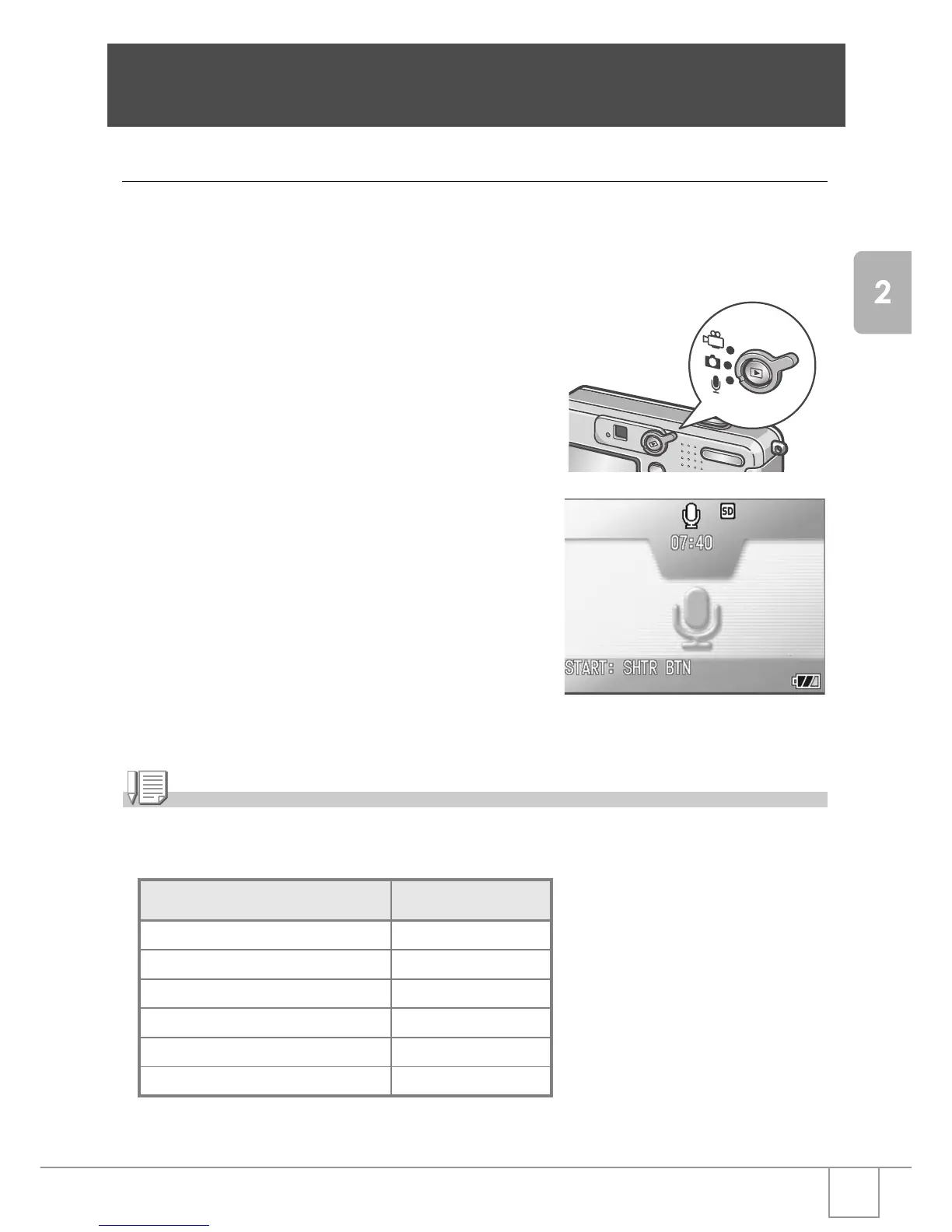 The voice recording time depends on the capacity of the SD memory card.